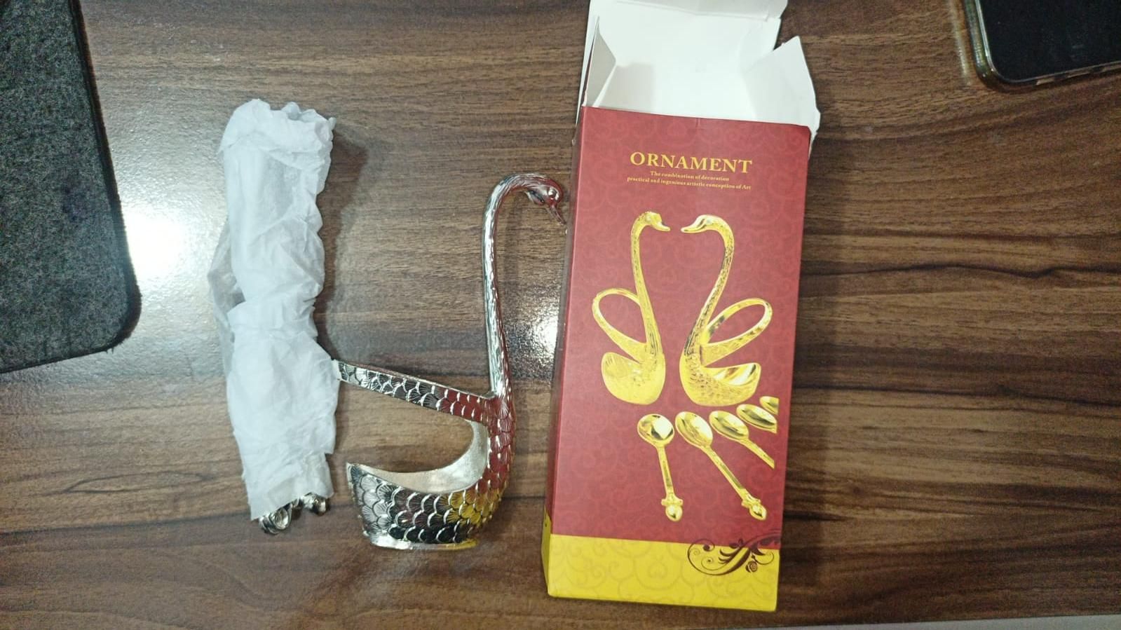Additional Information: Item: Pure Source India Metal Fork Set With Swan Base Holder for Coffee, Fruit, Desserts, Ice Cream, and Cake (15cm). Hand Made Beautiful Designs and Patterns at the Nodes. This dessert fork kit is a great gift choice for friends and families, especially for cook lovers. It is a perfect companion for the afternoon tea, enjoy your delicacy with this beautiful spoon set.
